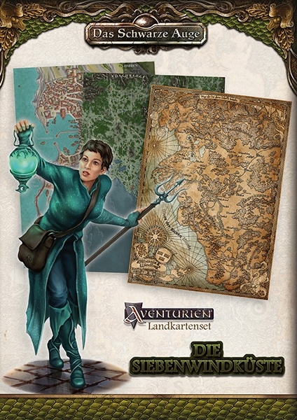Das Landkartenset enthält die folgenden Karten: Detaillierte Karte der Siebenwindküste, A2; InGame-Karte der Siebenwindküste, A3; Übersichtskarte der geographischen Regionen der Siebenwindküste, A3; Politische Karte der Siebenwindküste, A3; Stadtpläne von Abilacht, Harben, Honingen, Kyndoch und Winhall, A4; Stadtplan von Havena, A3; Stadtteil-Plan von Havena in A4 |