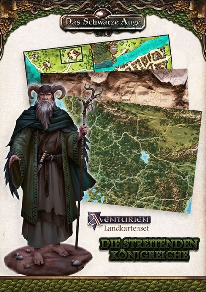 Das Set enthält die folgenden Karten: Detaillierte Karte der Streitenden Königreiche, A2 - InGame-Karte der Streitenden Königreiche, A3 - Übersichtskarte der geographischen Regionen der Streitenden Königreiche, A3 - Politische Karte der Streitenden Königreiche, A3 - Stadtpläne von Andergast, Joborn, Nostria, Salza & Salzerhaven und Teshkal sowie einem Dorf in der Waldwildnis: Hollerdonk |